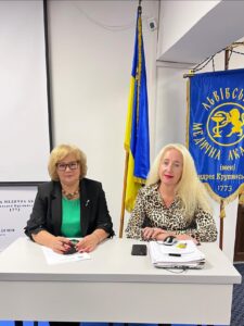Відповідно до порядку денного з питання «Відповідність змісту освітніх програм Академії до вимог професійних стандартів» виступила гарант освітньо-професійної програми «Медсестринство», кандидат з державного управління, доцент Наталія ДУБ. Співдоповідач – проректор з навчальної роботи, кандидат хімічних наук, доцент Лариса СОЙКА.