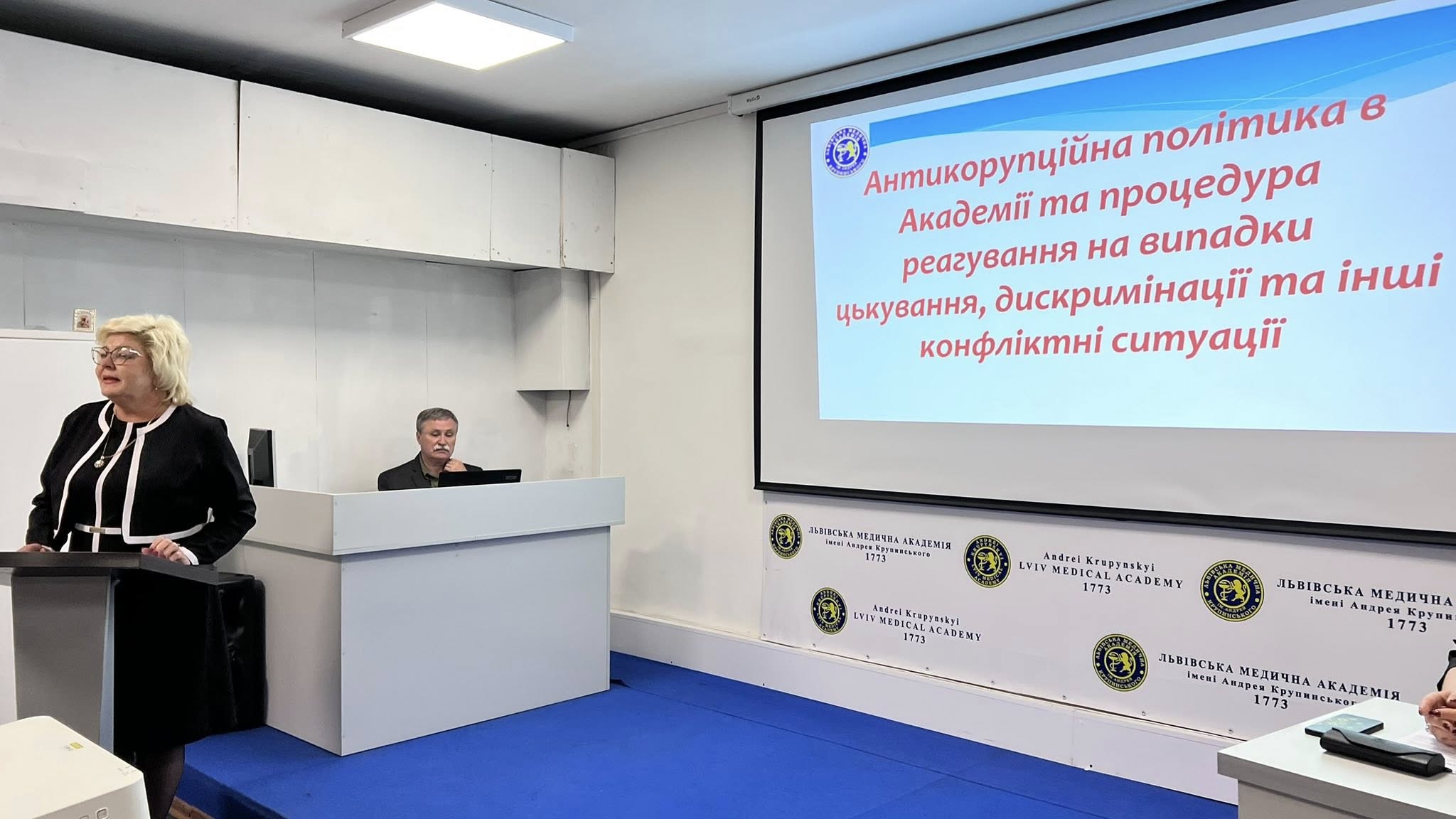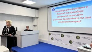 Антикорупційну політику в Академії та процедуру реагування на випадки цькування представила проректор з виховної роботи, кандидат наук з державного управління, доцент Наталія ЮРИСТОВСЬКА.