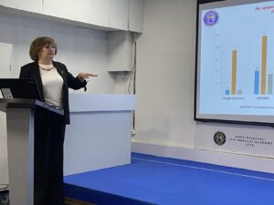 Про стан наукових досліджень магістрів медсестринства (група II МС-31) доповіла проректор з наукової роботи, кандидат філологічних наук, доцент Оксана СТОКОЛОС-ВОРОНЧУК.