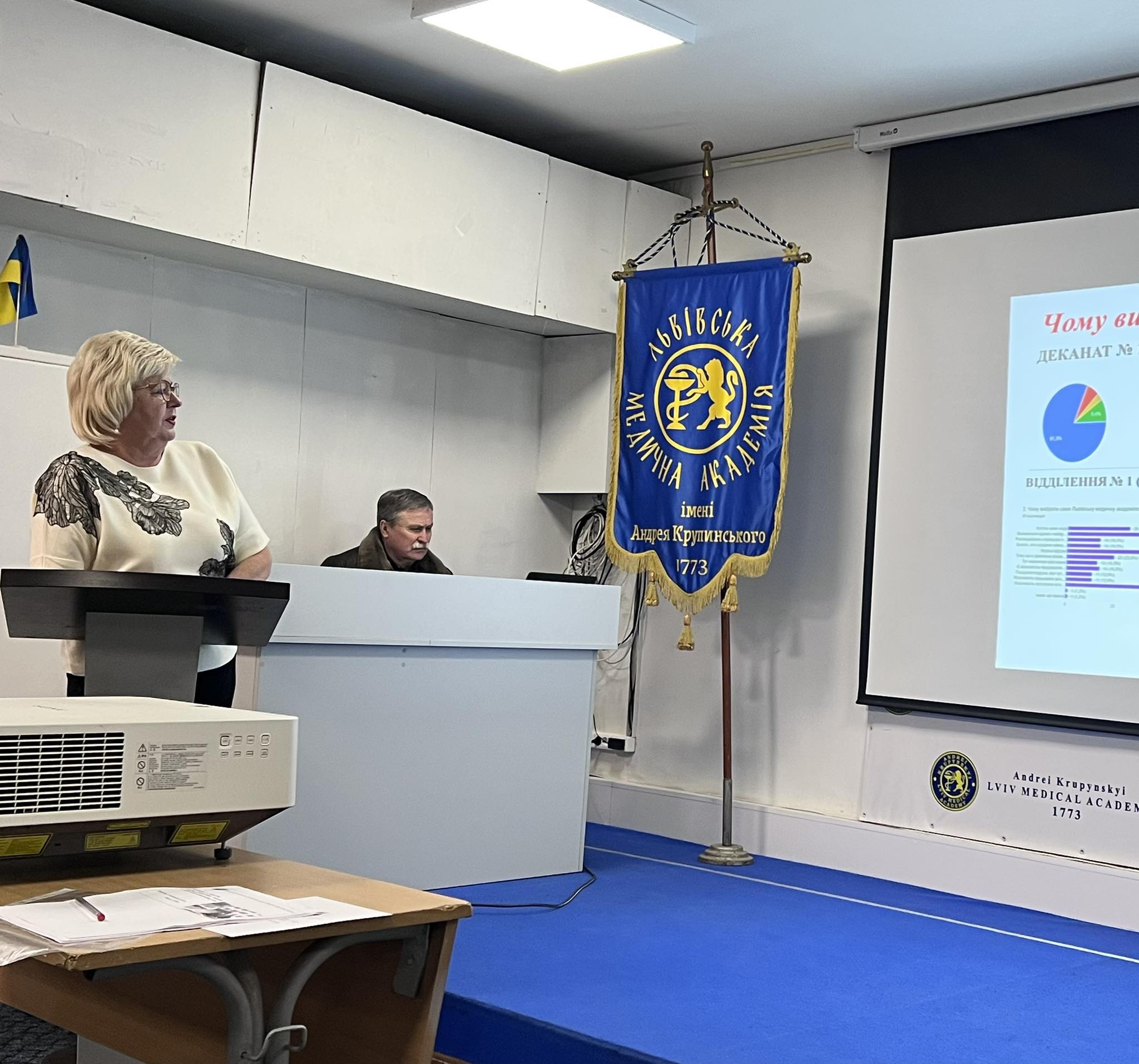 Формування вмінь і набуття навичок як складових якісної підготовки фахівців лабораторної медицини схарактеризувала завідувач кафедри лабораторної медицини, заслужений працівник освіти України Уляна ФЕДОРОВИЧ. Співдоповідач – завідувач навчально-методичної частини Володимир ФЕДОРИК.