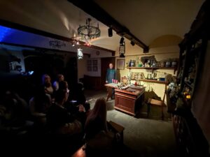 Помічники Таємного Аптекаря розповіли про символ медицини та фармації – чашу зі змією, адже колись зміїна отрута використовувалась як ліки. Також всі присутні ознайомилися з виставкою аптечного посуду часів кінця 19-го – початку 20-го століть, зокрема побачили лабораторний посуд таких світових брендів, як VICHY, BROCRD, BYER та BITTNER.