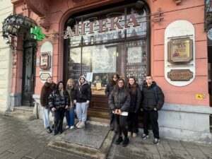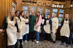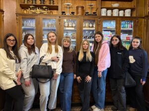Нещодавно, під керівництвом викладача ,,Основи фармакології та медичної рецептури” Оксани Ожібко, тут побували студенти 3 Мс ф-4 і 3 Мсф-6. Студенти мали можливість побачити оригінальний інтер’єр, ознайомитися з історією аптеки. Особливу увагу присутніх привернули автентичні меблі, вишуканий історичний декор, устаткування, яким користувались аптекарі минулого століття.