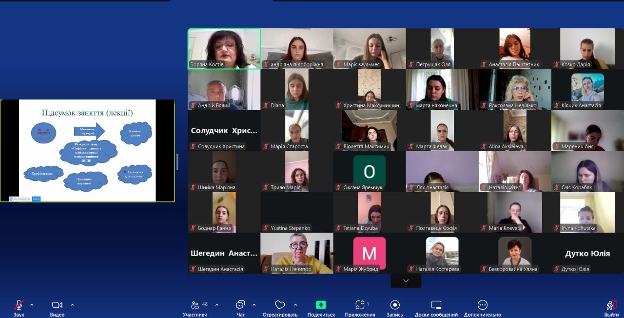 12 вересня 2025 року на кафедрі внутрішньої медицини та охорони здоров’я відбулася показова онлайн-лекція на тему «Сифіліс» у межах освітньої компоненти «Медсестринство в дерматології та венерології». Лекцію провела викладач Зоряна Костів для студентів групи ІІ МС 21.