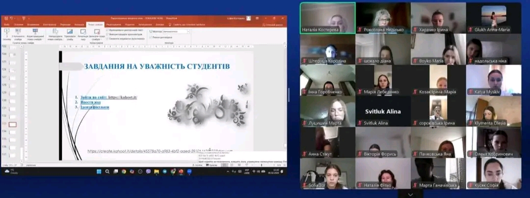 Викладачка активно залучала студентів до обговорення, застосувала інтерактивні методи опитування на уважність здобувачів використавши навчальну платформу Кahoot, стимулюючи їхню пізнавальну активність та критичне мислення.