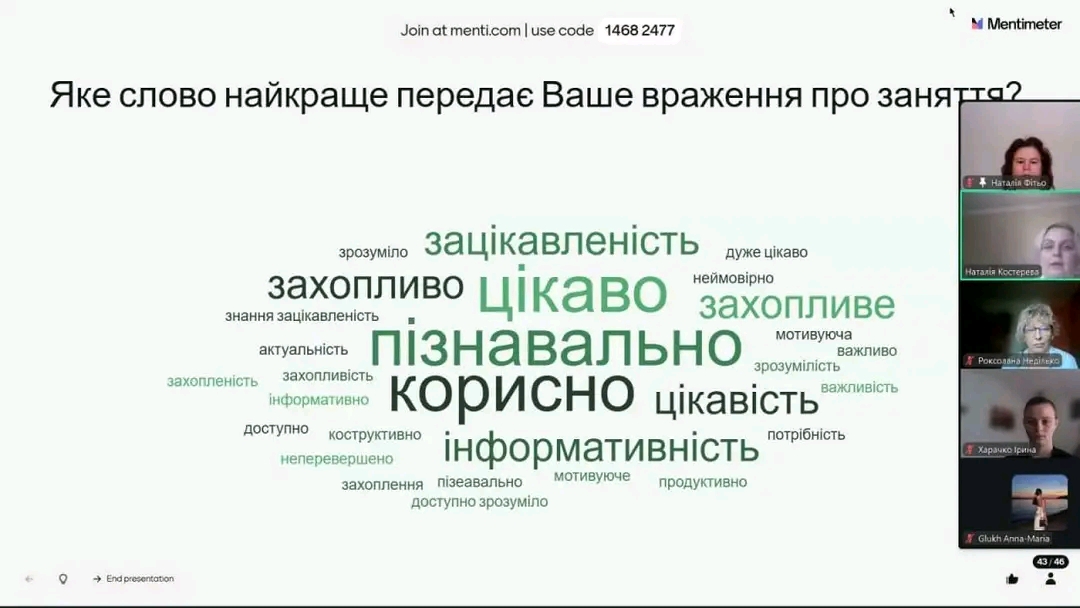 Наприкінці лекції Наталія Василівна використала для зворотнього зв’язку та оцінки заняття сучасний інструмент для створення інтерактивних презентацій Mentimeter.