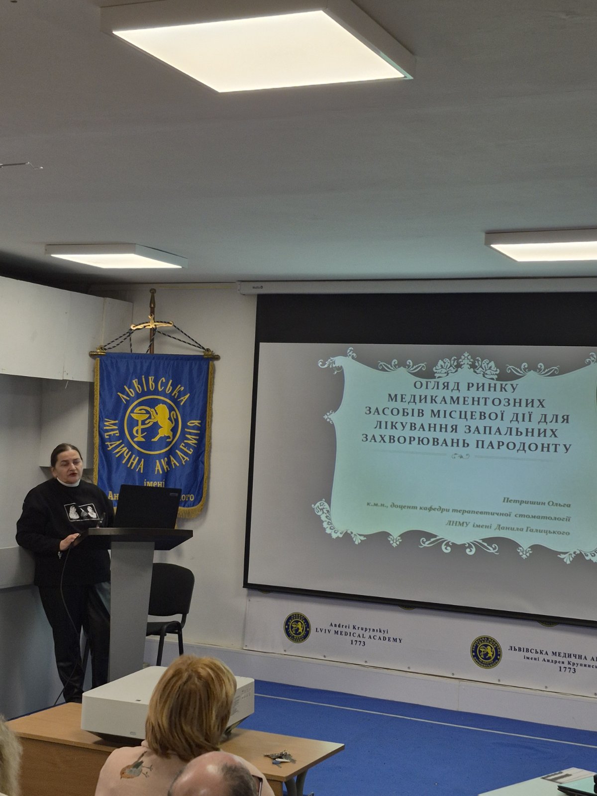 З доповіддю виступила Петришин Ольга, к.м.н., доцент кафедри терапевтичної стоматології Львівського національного медичного університету імені Данила Галицького. Співдоповідачами були завідувач відділення №2 Ольга Задорецька та голова циклової комісії стоматологічних дисциплін Ірина Тісновець.