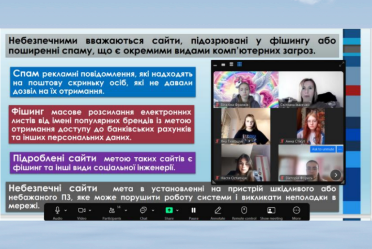 «Цифрова безпека сьогодні — це не опція, а необхідність». У дистанційному форматі 11.02–12.02.2026 р. були проведені тренінги викладачем інформатики Світланою ІВАСЄЧКО із розвитку компетенцій безпечної поведінки в Інтернеті для студентів груп 1-го курсу ІСТф-1, Мсф-1, Мсф-2. Студенти ознайомилися з правилами кібергігієни, дізналися, як розпізнавати онлайн-загрози, засвоїли основи захисту персональних даних та висловили свої думки про безпеку в інтернеті. Завдяки платформі Дія.Освіта студенти ознайомилися із надзвичайно актуальною інформацією про дипфейки та викрадення даних.