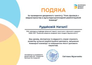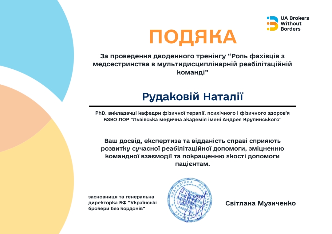 Щира подяка UA Brokers Without Borders (тег)за підтримку та інвестицію в розвиток реабілітаційного медсестринства в Україні!