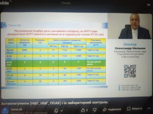 12 грудня 2025 року викладачі кафедри лабораторної медицини взяли участь у лекції для лікарів-лаборантів, сімейних лікарів, кардіологів, акушерів-гінекологів на тему: “Антикоагулянти (НФГ, НМГ, ПОАК) і їх лабораторний контроль”.