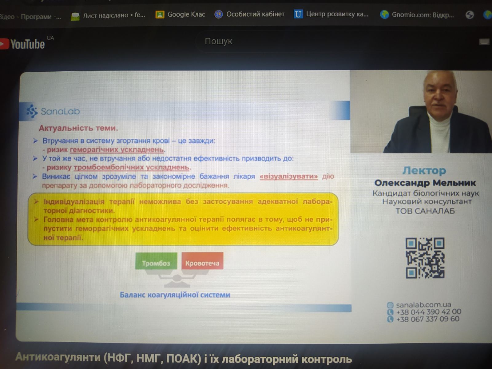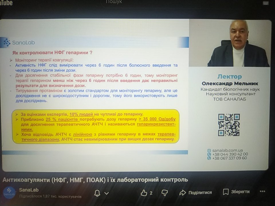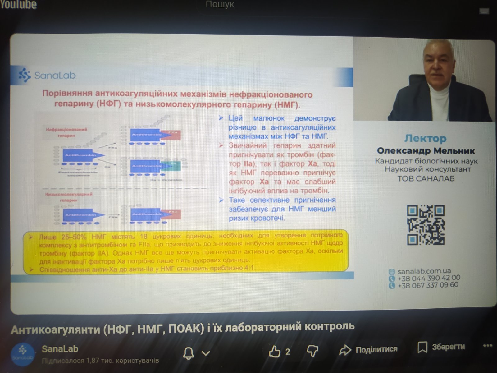 12 грудня 2025 року викладачі кафедри лабораторної медицини взяли участь у лекції для лікарів-лаборантів, сімейних лікарів, кардіологів, акушерів-гінекологів на тему: “Антикоагулянти (НФГ, НМГ, ПОАК) і їх лабораторний контроль”.