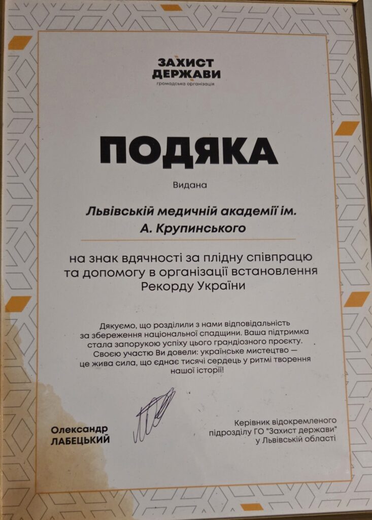 4 квітня 2026 року викладачі та студенти Львівської медичної академії імені Андрія Крупинського долучилися до встановлення рекорду України з одночасного та наймасовішого розпису писанок.