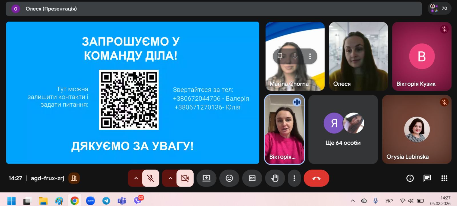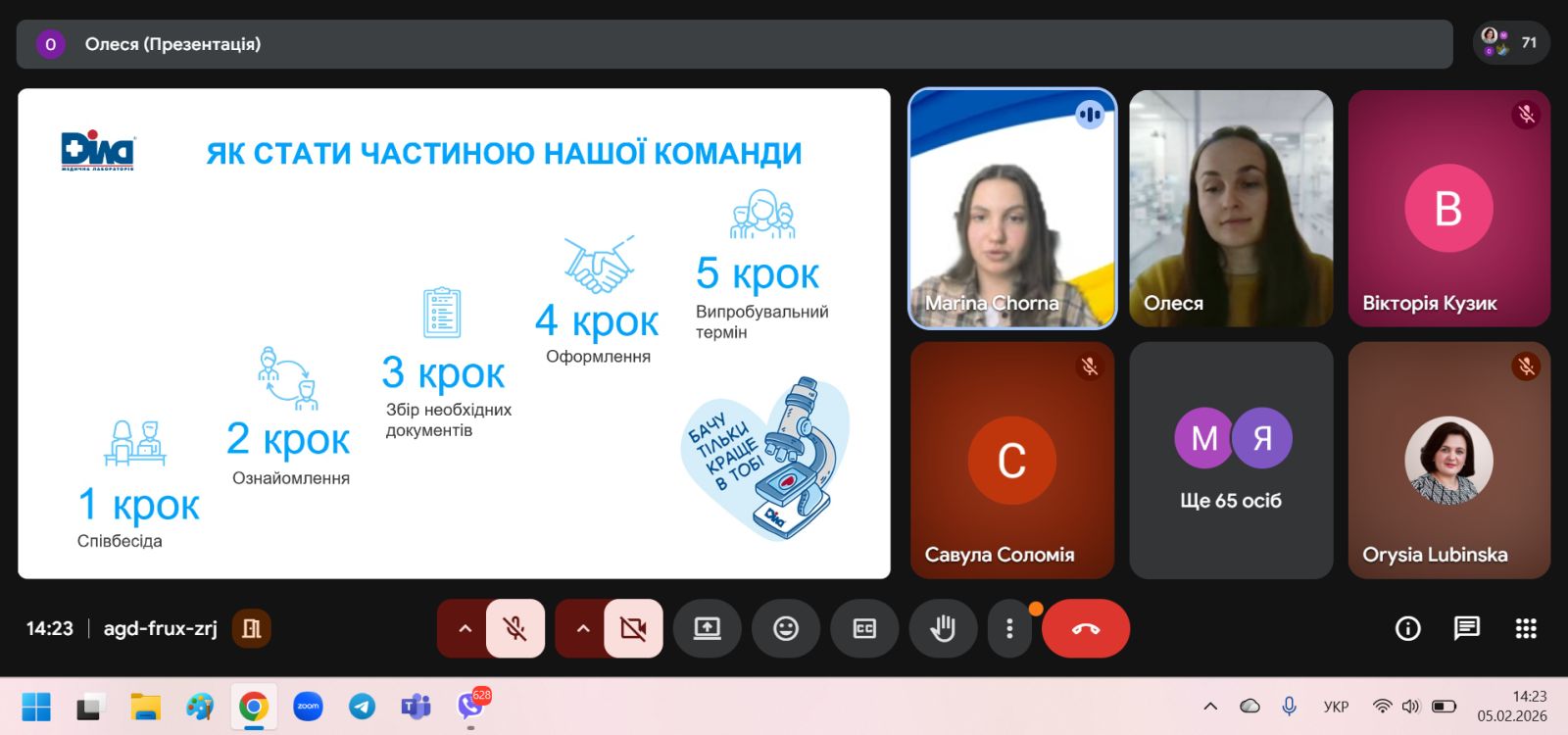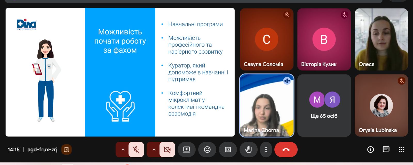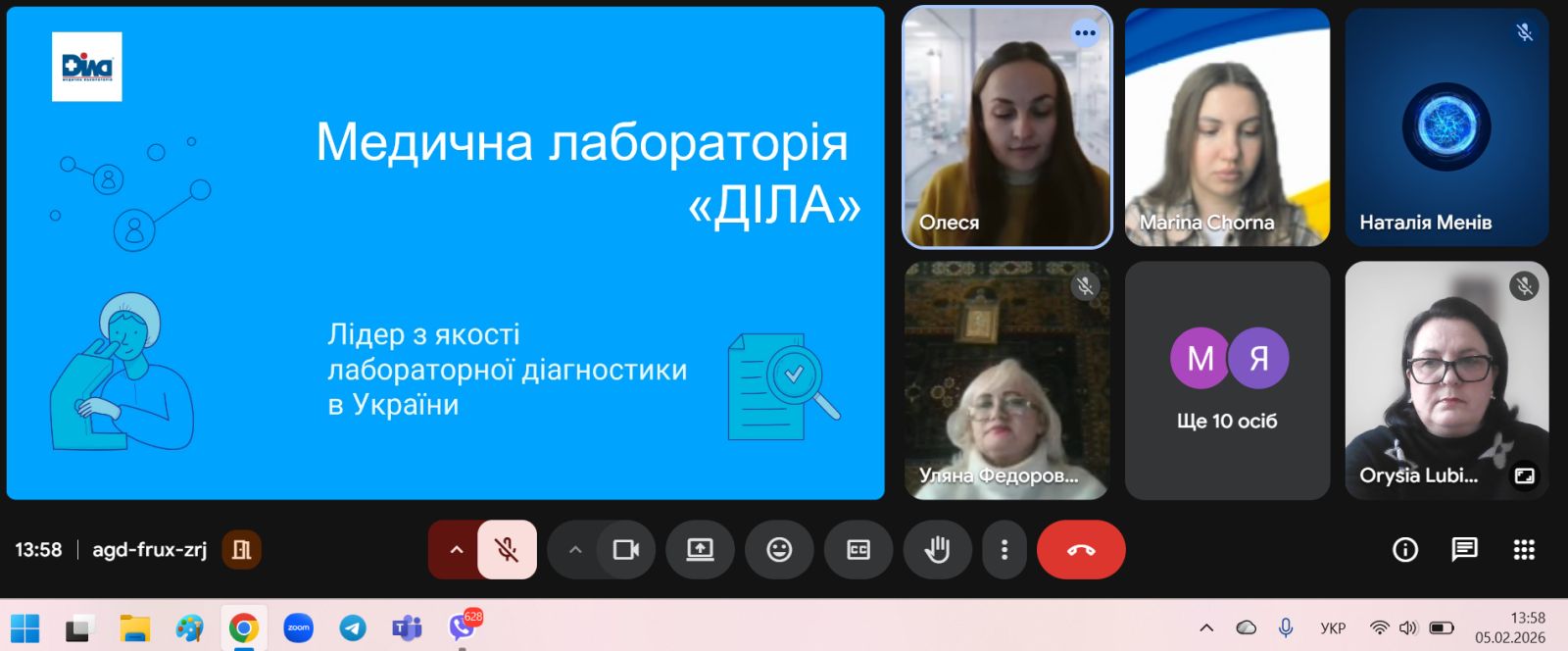 05 лютого 2026 року на кафедрі лабораторної медицини відбулася зустріч здобувачів освіти освітньо-професійної програми “Лабораторна діагностика” та “Сестринська справа” з працівниками та роботодавцями медичної лабораторії “ДІЛА” в онлайн форматі.