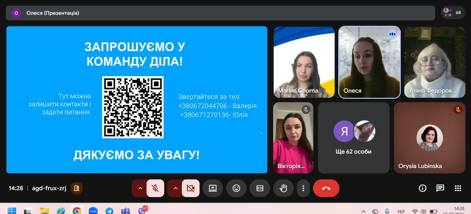 Завідувач кафедри лабораторної медицини У.М. Федорович також подякувала працівникам лабораторії, викладачам кафедри, 62 студентам які доєдналися до зустрічі.